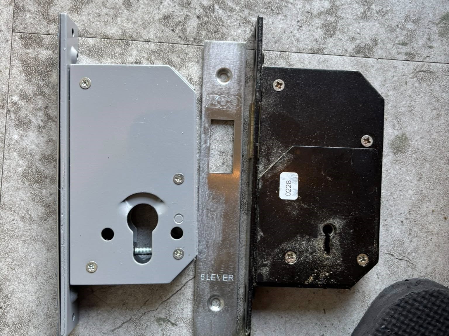 We replaced the existing Zoo 3G110 key with a BSI, fire-safe Union and APECS thumbturn lock. It was a pretty neat installation. Take a look at the comparison photos of the old lock and the newly-fitted lock.